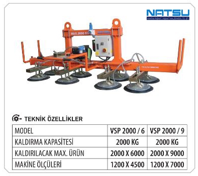 Kurulum gerektirmeyen ve kolay kullanımı ile farkını ortaya koyan VSP-T 2000 9 metreye ve gelecek taleplere göre daha farklı uzunluklarda olan sac plakaların vakumla kaldırma ve taşıma işlemini güvenli bir şekilde gerçekleştirmektedir.